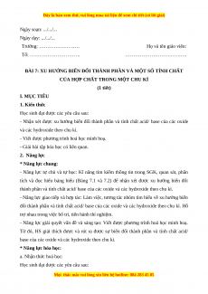 Giáo án Bài 7: Xu hướng biến đổi thành phần và một số tính chất của hợp chất trong một chu kì Hóa học 10 Kết nối tri thức