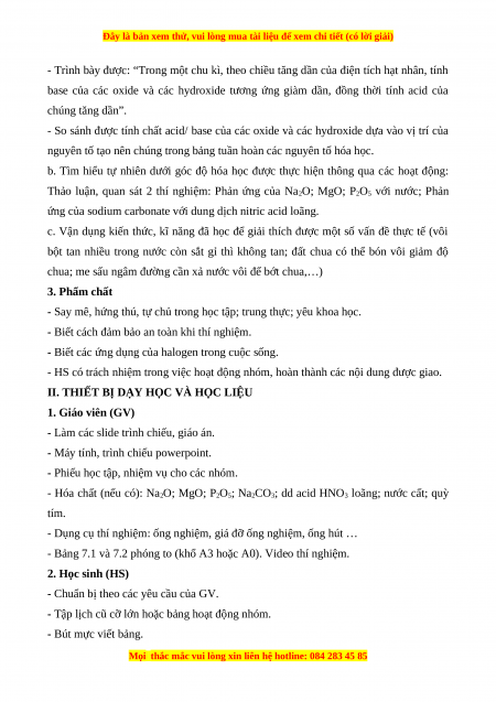- Hóa chất (nếu có): Na2O; MgO; P2O5; Na2CO3; dd acid HNO3 loãng; nước cất; quỳ tím.