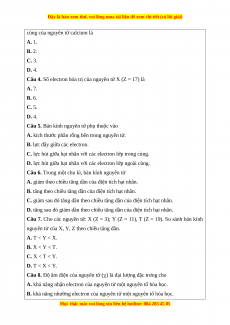 Câu 7. Cho các nguyên tử: X (Z = 3); Y (Z = 11), T (Z = 19). So sánh bán kính
