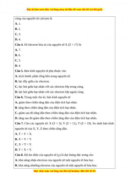 Câu 5. Bán kính nguyên tử phụ thuộc vào