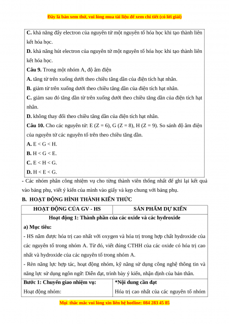 - HS nắm được hóa trị cao nhất với oxygen và hóa trị trong hợp chất hydroxide của