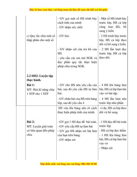 - Giúp HS biết: Thực hiện phép chia 1 số TP cho 1 số TP 2. Kĩ năng.