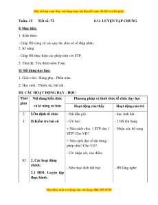 I.Ổn định tổ chức - Hát đầu giờ. - học sinh hát. 3’ II.Kiểm tra bài cũ - GV hỏi: - 2 HS lên bảng + Nêu cách chia 1 STP cho 1 - Nhận xét, bổ sung STP? Cho VD?
