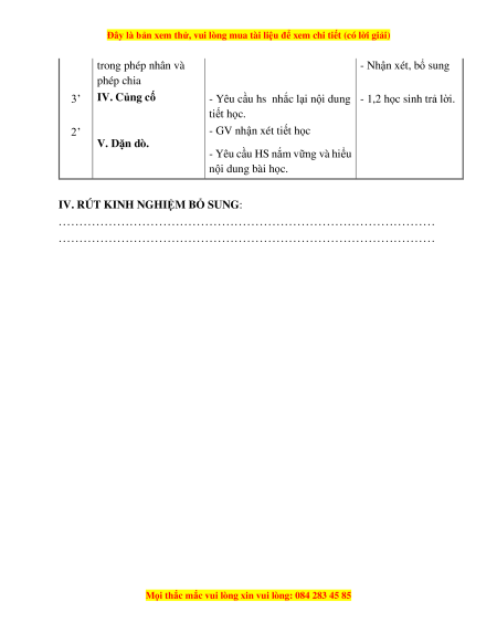trong phép nhân và - Nhận xét, bổ sung phép chia 3’ IV. Củng cố