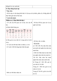thực hiện giải một số bài toán. * Cách tiến hành: