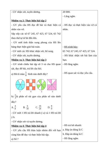 cùng bàn để đọc và thực hiện bài tập. b. Đáp án đúng là C a) Số ? - HS lắng nghe.