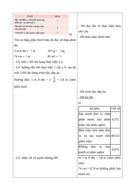 - HS ôn tập và vận dụng kiến thức về cấu tạo số tự nhiên, phân số, số thập phân để