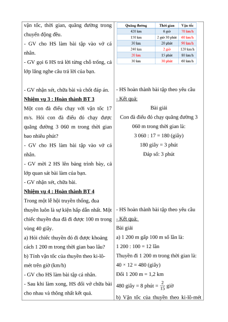 - Rèn kĩ năng tính vận tốc, quãng đường, thời gian trong một chuyển động đều.
