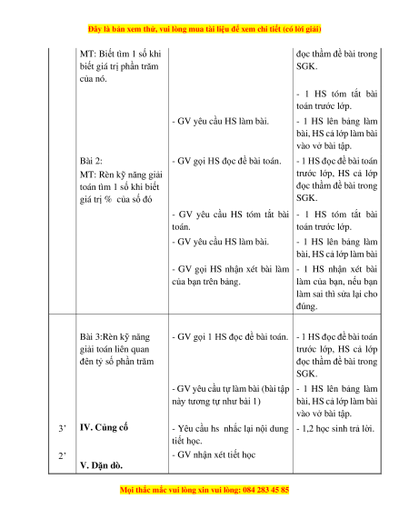 đọc thầm đề bài trong giá trị % của số đó SGK.