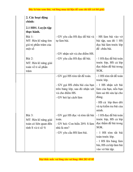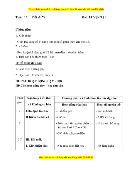 - Giúp HS củng cố kĩ năng tính một số phần trăm của một số.