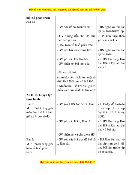đọc thầm đề bài trong giá trị % của số đó SGK.