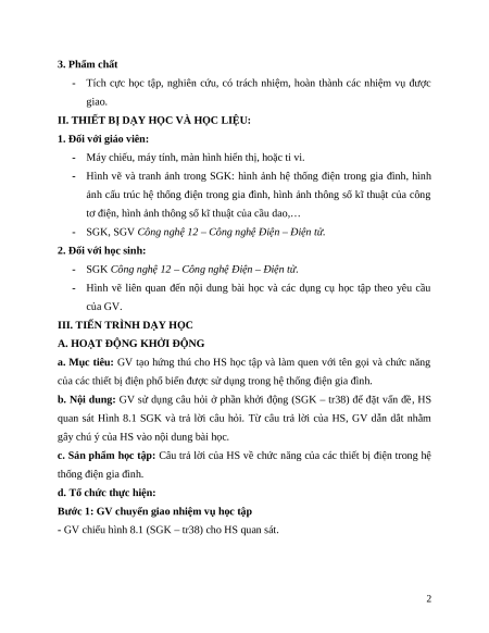 - Trình bày được chức năng và thông số kĩ thuật của một số thiết bị điện phổ
