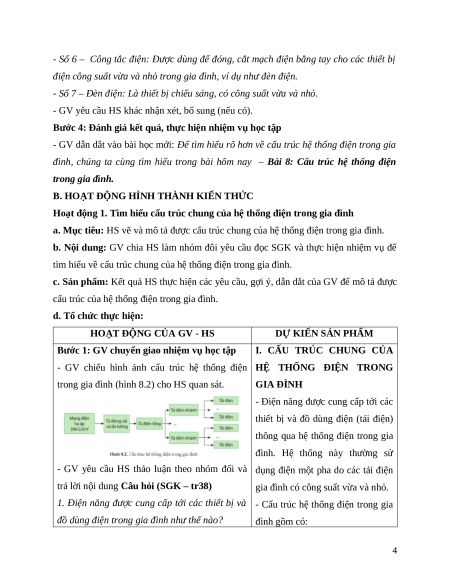 Giáo án Bài 8: Cấu trúc hệ thống điện trong gia đình (2024) Công nghệ Điện - Điện tử 12 Cánh diều