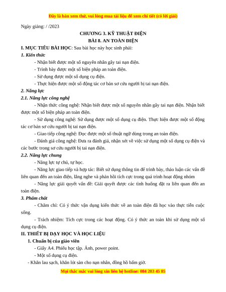 - Năng lực giải quyết vấn đề: Giải quyết được các tình huống đặt ra liên quan đến an toàn điện. 3. Phẩm chất
