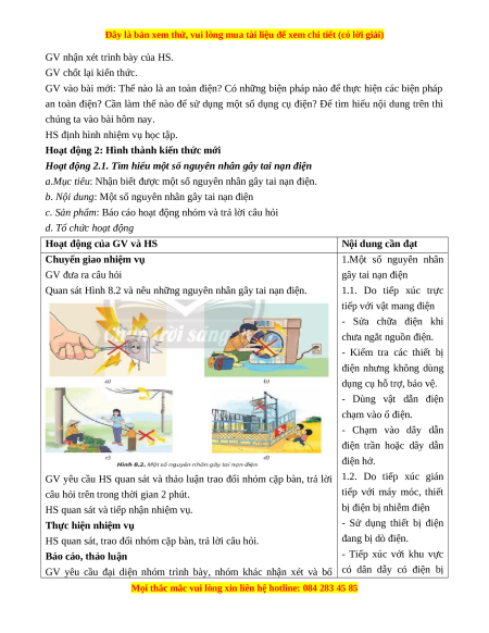 Hoạt động 2.1. Tìm hiểu một số nguyên nhân gây tai nạn điện