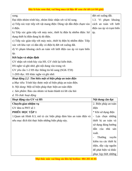 1.Quan sát Hình 8.3, mô tả các biện pháp đảm bảo an toàn điện và - Lựa chọn những