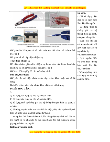 nêu mục đích khi thực hiện những biện pháp này. thiết bị an toàn và sử dụng đúng hướng dẫn của nhà sản xuất. - Thường xuyên kiểm tra các thiết bị diện, dây cáp nguồn để phát hiện và khắc phục kịp thời những