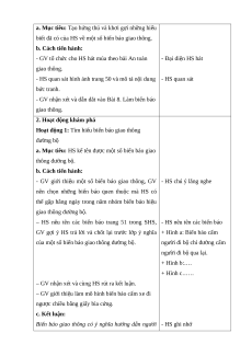 a. Mục tiêu: HS kể tên được một số biển báo giao thông đường bộ. b. Cách tiến hành: