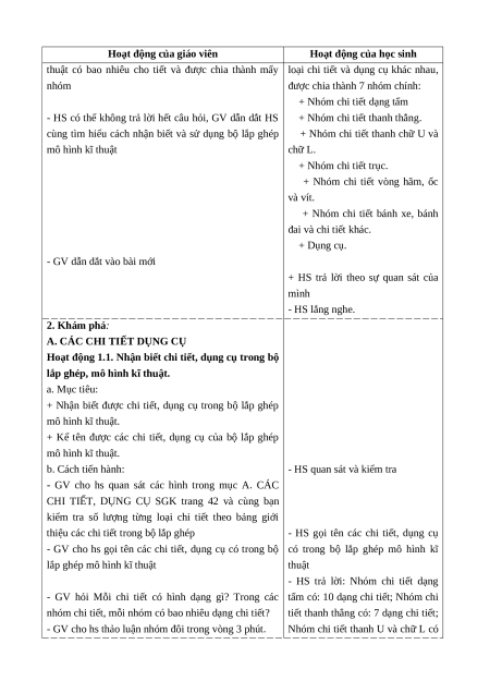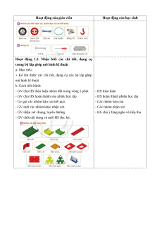 + Kể tên được các chi tiết, dụng cụ của bộ lắp ghép mô hình kĩ thuật. b. Cách tiến hành:
