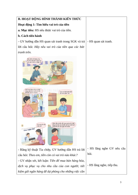 a. Mục tiêu: HS nêu được vai trò của tiền. b. Cách tiến hành