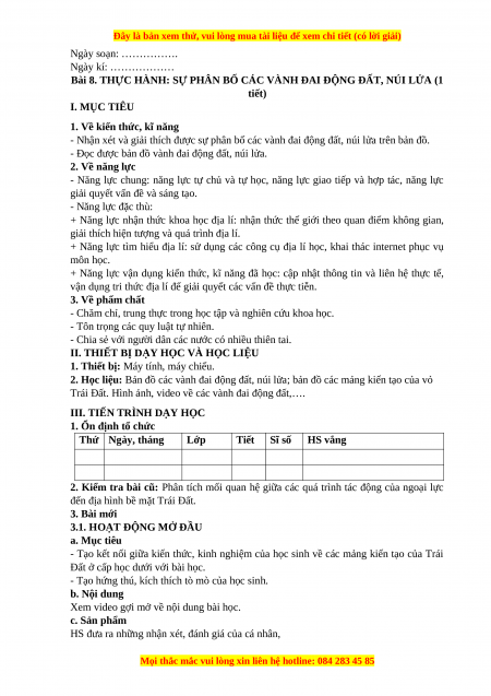 Bài 8. THỰC HÀNH: SỰ PHÂN BỐ CÁC VÀNH ĐAI ĐỘNG ĐẤT, NÚI LỬA (1 tiết) I. MỤC TIÊU