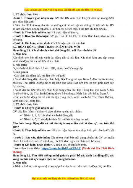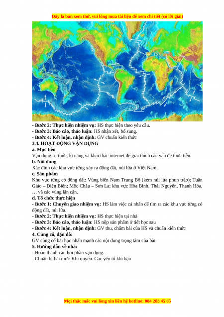 2. Học liệu: Bản đồ các vành đai động đất, núi lửa; bản đồ các mảng kiến tạo của vỏ