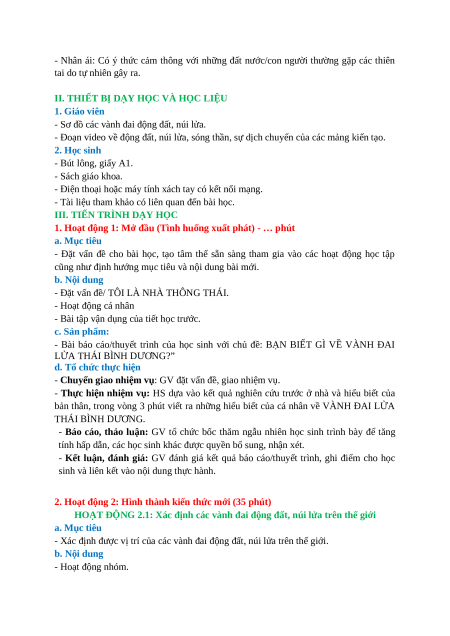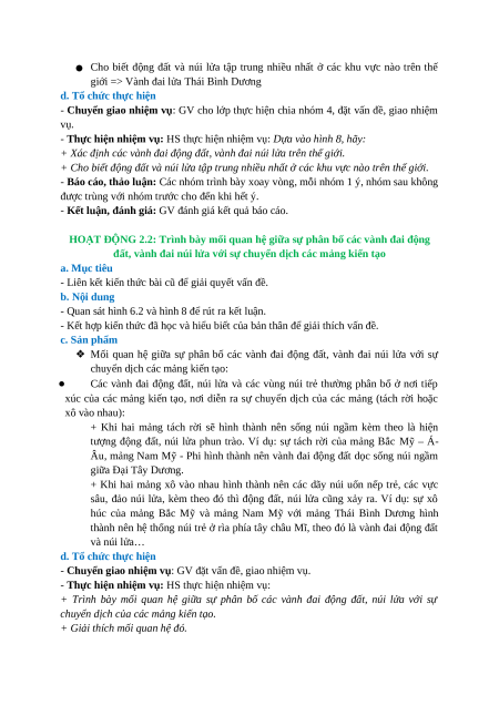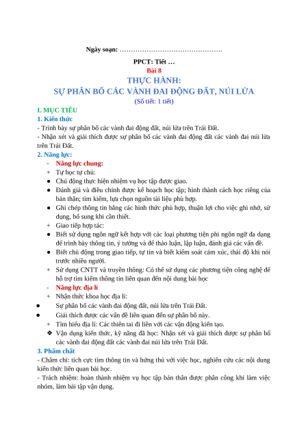 SỰ PHÂN BỐ CÁC VÀNH ĐAI ĐỘNG ĐẤT, NÚI LỬA (Số tiết: 1 tiết) I. MỤC TIÊU 1. Kiến thức