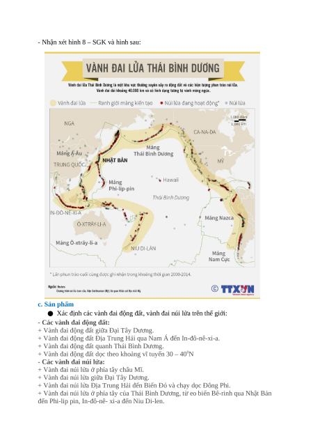 - Nhận xét và giải thích được sự phân bố các vành đai động đất các vành đai núi lửa