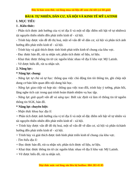 BÀI 8: TỰ NHIÊN, DÂN CƯ, XÃ HỘI VÀ KINH TẾ MỸ LATINH I. MỤC TIÊU 1 . Kiến thức: