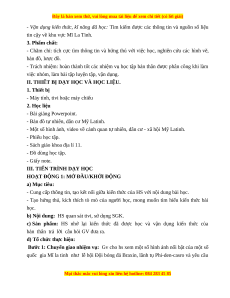 - Máy tính, tivi hoặc máy chiếu 2. Học liệu - Bài giảng Powerpoint.
