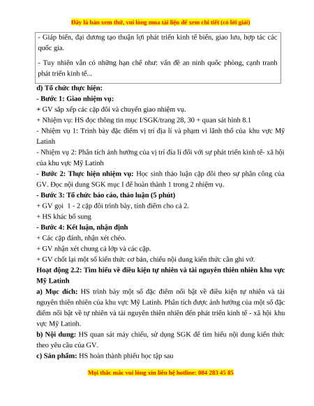 - Nhiệm vụ 2: Phân tích ảnh hưởng của vị trí đía lí đối với sự phát triển kinh tế- xã hội của khu vực Mỹ Latinh