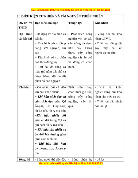 II. ĐIỀU KIỆN TỰ NHIÊN VÀ TÀI NGUYÊN THIÊN NHIÊN