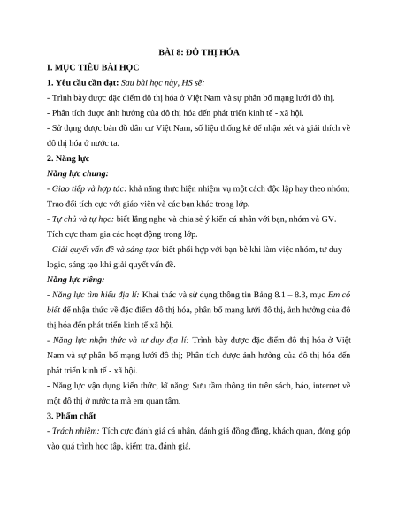 đô thị hóa ở nước ta. 2. Năng lực