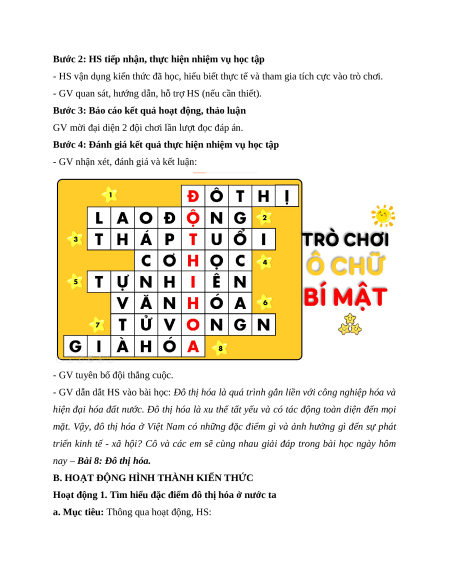c. Sản phẩm: HS trả lời câu hỏi để tìm ra được từ khóa “Đô thị hóa”.