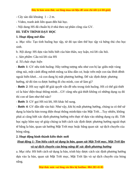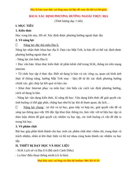 Giáo án Bài 8 Địa lí 6 Cánh diều (2024): Xác định phương hướng ngoài thực địa