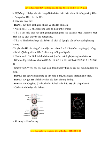 + Khai thác Internet phục vụ môn học: tìm hiểu các cách xác định phương hướng, cách sử dụng la bàn.
