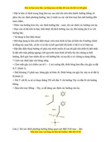 phải ai cũng biết xác định phương hướng trên thực tế dựa vào những dụng cụ đó. Tiết