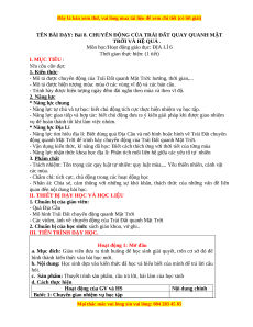TÊN BÀI DẠY: Bài 8. CHUYỂN ĐỘNG CỦA TRÁI ĐẤT QUAY QUANH MẶT