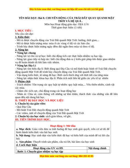 Môn học/Hoạt động giáo dục: ĐỊA LÍ 6