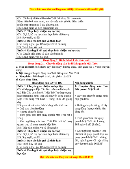 Hoạt động 2.1: Chuyển động của Trái Đất quanh Mặt Trời