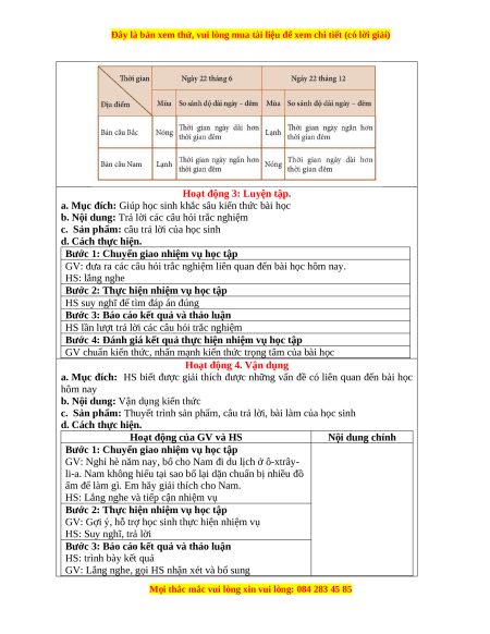- Mô tả được hiện tượng mùa: mùa ở các vùng vĩ độ và các bán cầu.