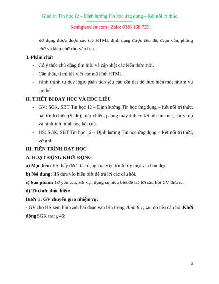 - Sử dụng được thẻ HTML để định dạng văn bản, phông chữ. 2. Năng lực