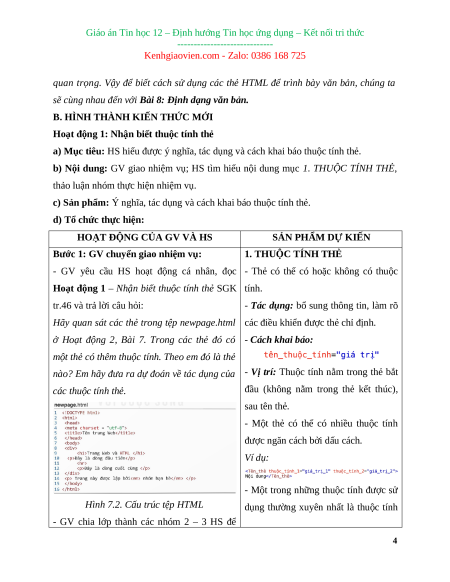Hoạt động 1: Nhận biết thuộc tính thẻ