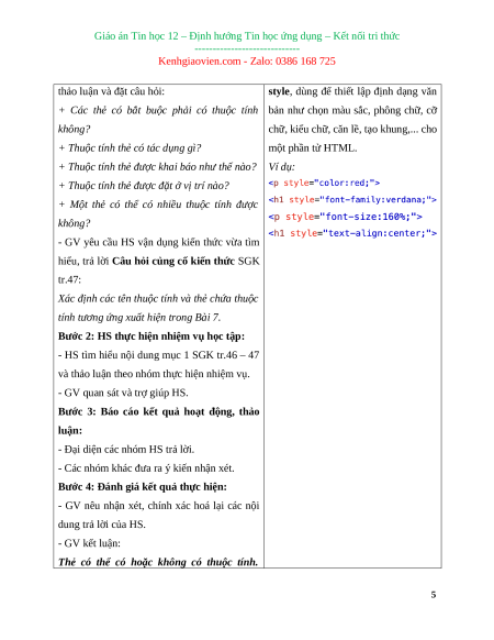 Bước 1: GV chuyển giao nhiệm vụ: 1. THUỘC TÍNH THẺ