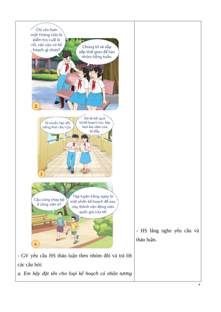 a. Em hãy đặt tên cho loại kế hoạch cá nhân tương 4