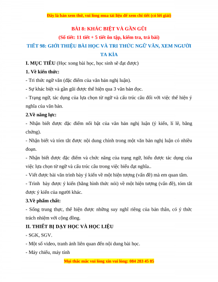 TIẾT 98: GIỚI THIỆU BÀI HỌC VÀ TRI THỨC NGỮ VĂN, XEM NGƯỜI TA KÌA
