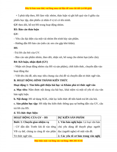 - Khám phá tri thức Ngữ văn. b) Nội dung: