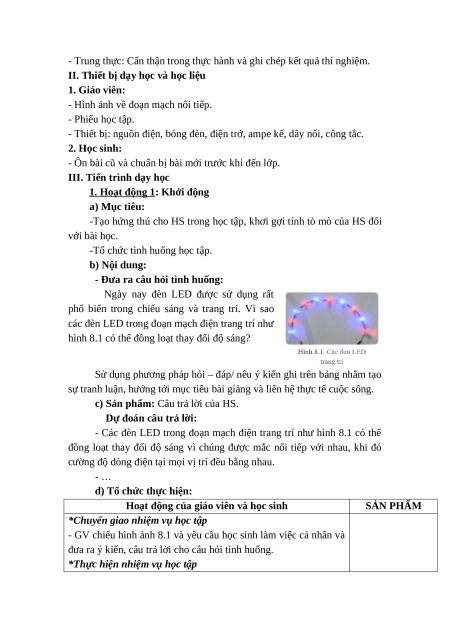 Giáo án Bài 8 Khoa học tự nhiên 9 Cánh diều (2024): Đoạn mạch nối tiếp
