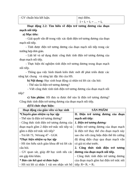độ dòng điện và tính điện trở tương đương trong đoạn mạch nối tiếp. 2. Phẩm chất: