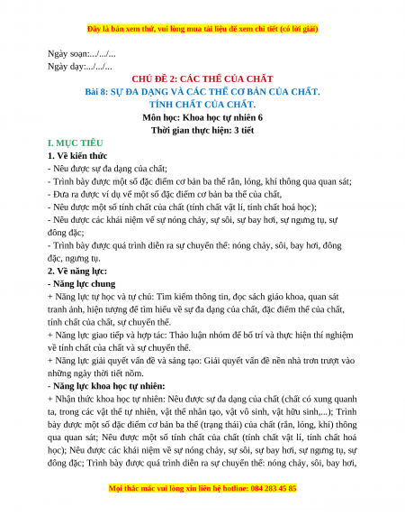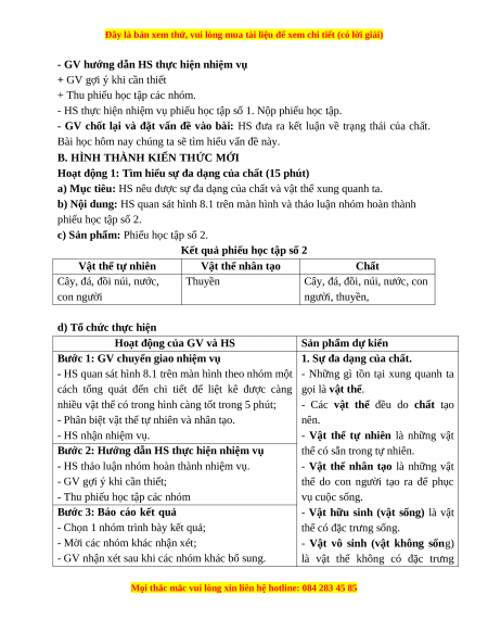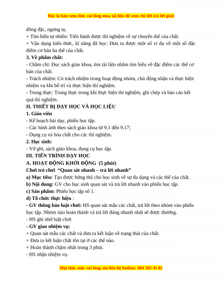 + Nhận thức khoa học tự nhiên: Nêu được sự đa dạng của chất (chất có xung quanh
